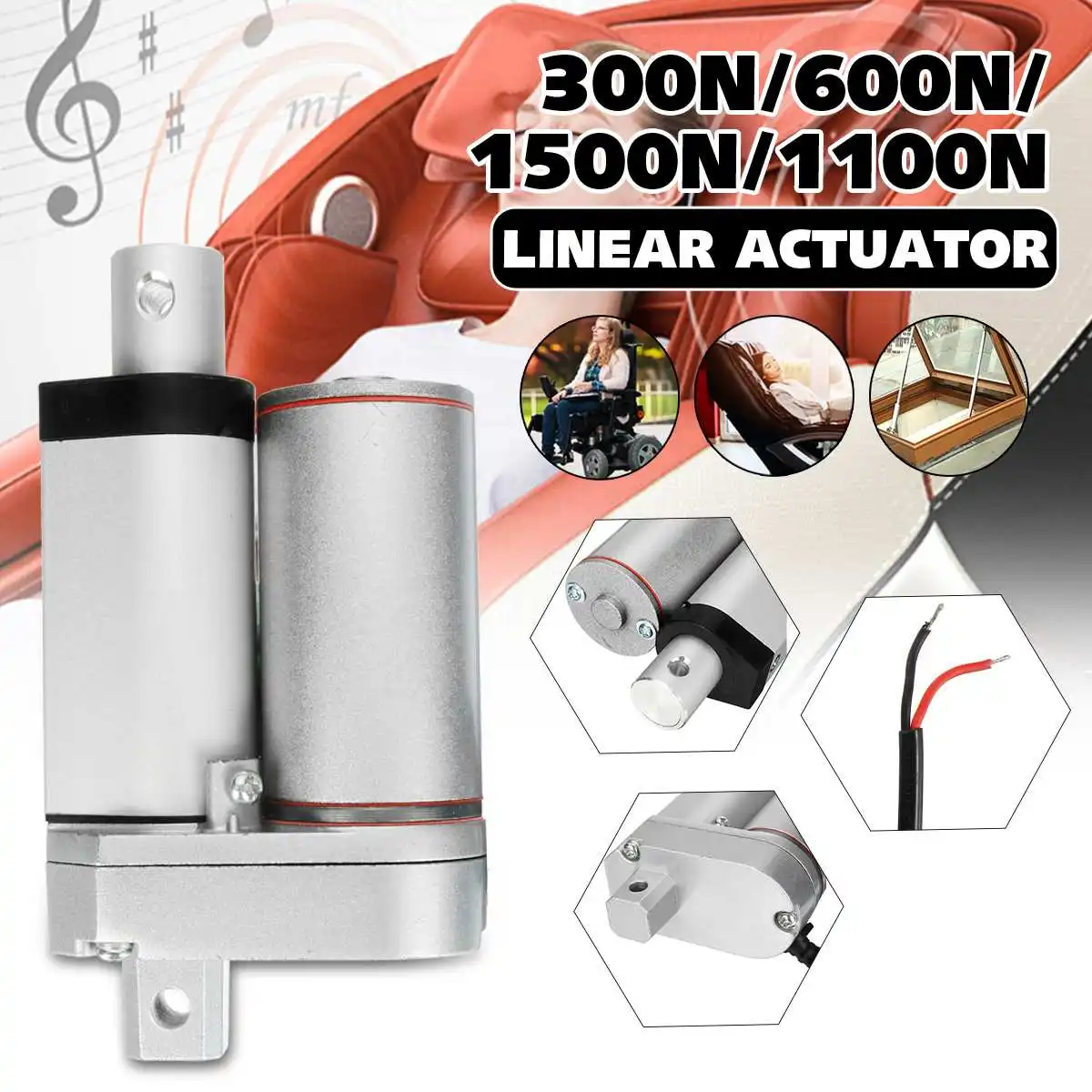 Hot Deal DC24V 20mm 300/600/1100/1500N Electric Motor Linear Actuator For lectric Self Unicycle Scooter Inpu