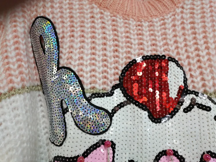 Mega Discount Pink Sequins Ice Cream Knit Sweater 2018 Women Beading Ball Street Loose Pullover Clothing Autumn W