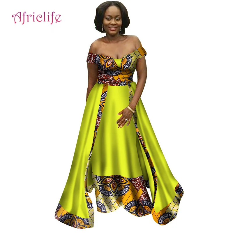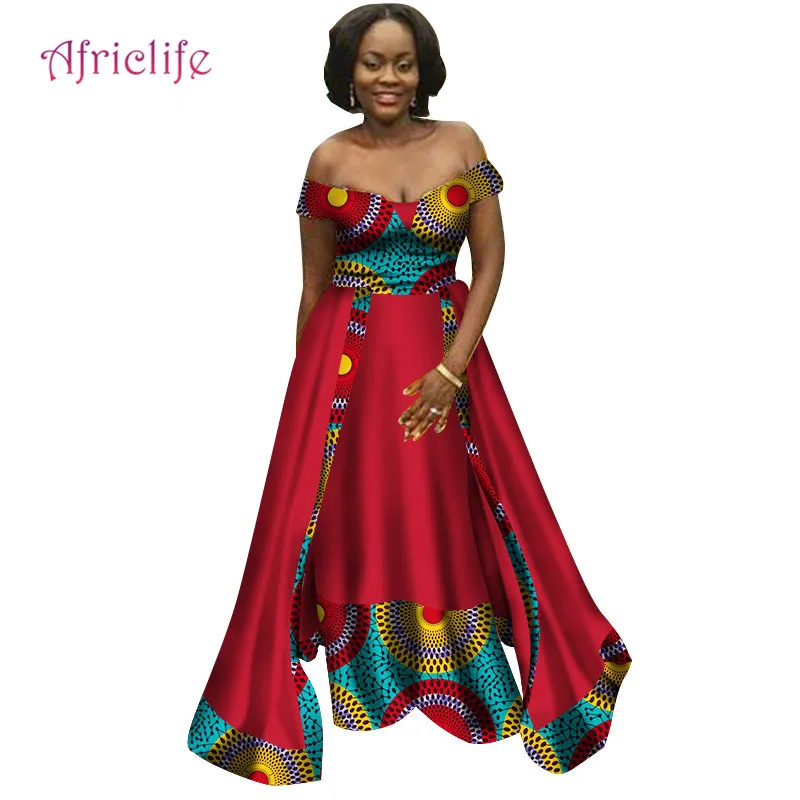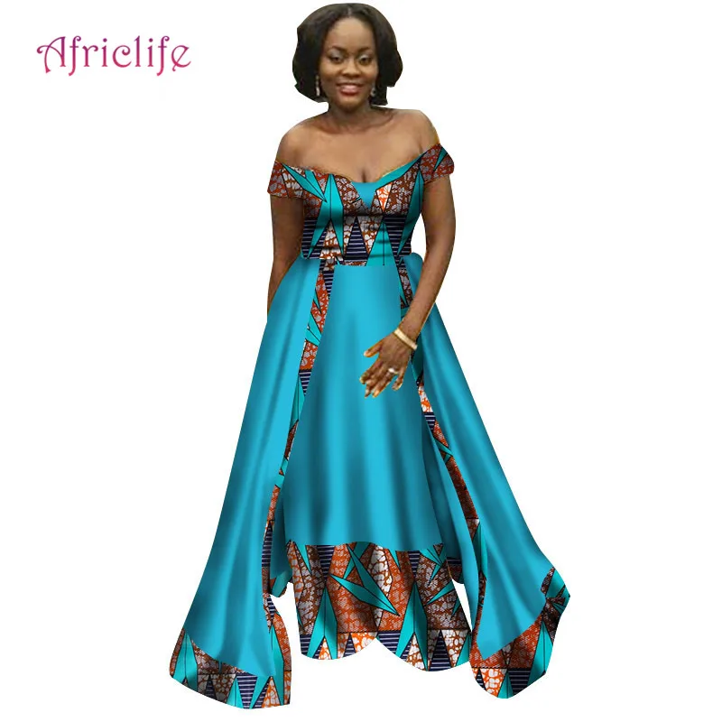 Super Sale Bazin Riche Lady Shawl Long Dress Women African Clothing Party Vestidos Dashiki African Patchwork D