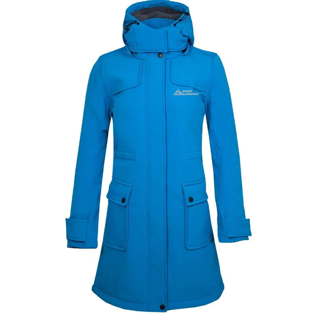 Hot Deal Mount Conquer Women Long Softshell Jacket Hiking Jacket Fleece Coat Outdoor Sport Wear Windproof Ri