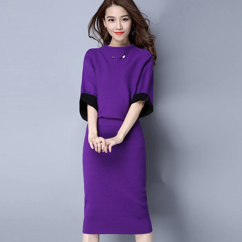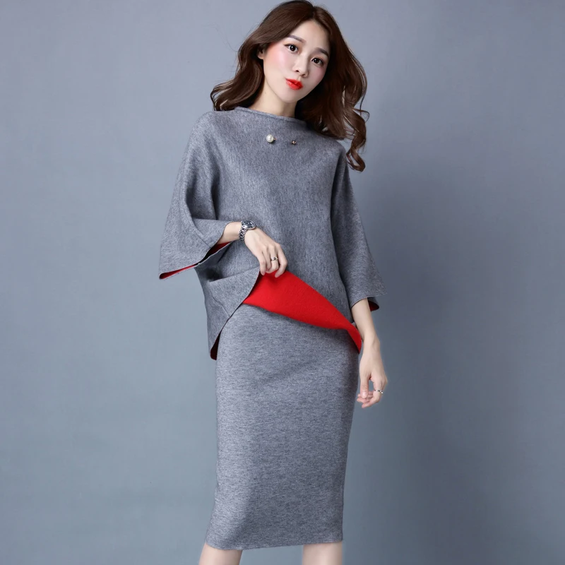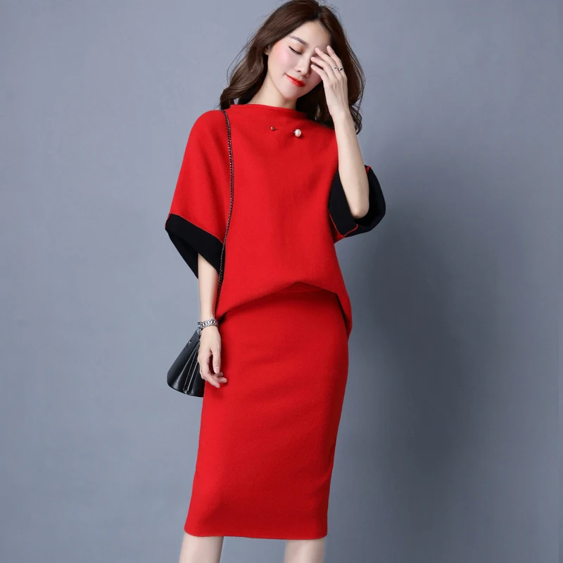 Best Sale Elegant Women Two Piece Set New Spring Autumn Female Pullover Sweater Slim Skirt Knitted Suit Woman