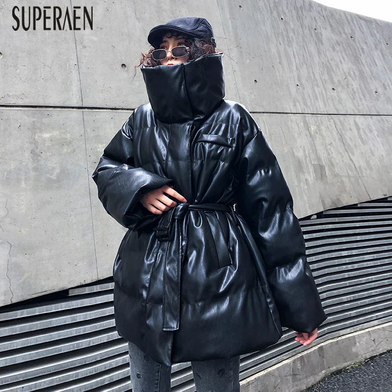 Mega Sale SuperAen Thick Leather Parkas Coat Female Autumn and Winter 2019 New Pluz Size Parkas Coat Women Fa